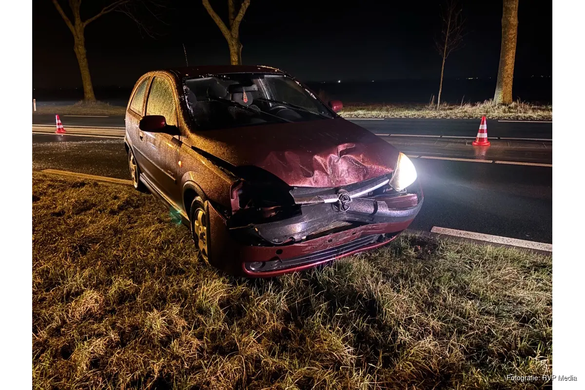 Vermoedelijk door de ontstane gladheid raakte de auto in de slip waardoor het eenzijdige ongeval ontstond. De bestuurster raakte niet gewond, doch haar auto moest afgevoerd worden dor een bergingsbedrijf.