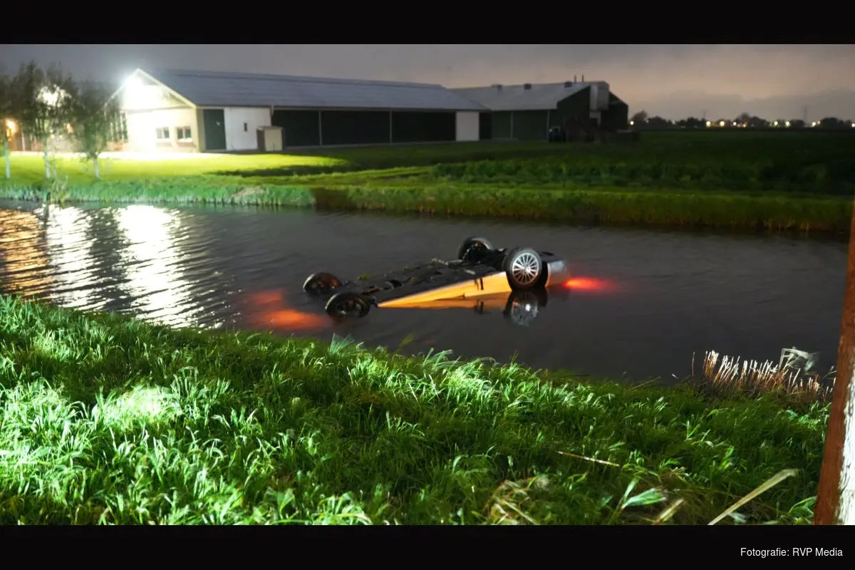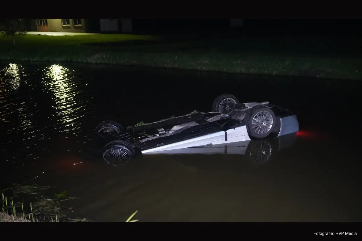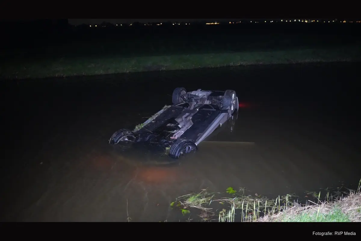 Een bergingsbedrijf zal de personenauto door middel van een kraan uit de sloot takelen. De auto kan als total loss worden beschouwd.