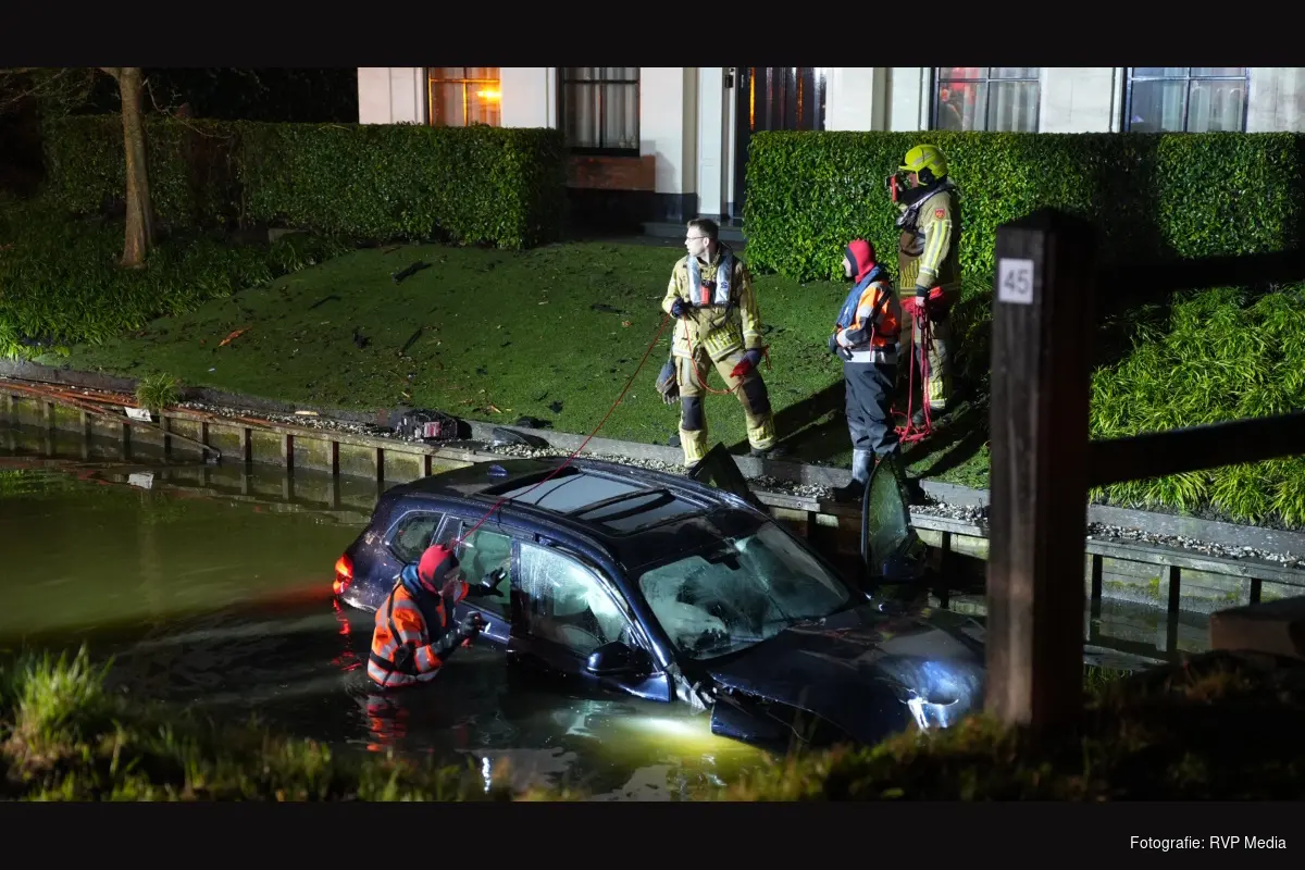 Een automobilist kwam door nog onbekende oorzaak rechts van de weg in de berm terecht. De bestuurder wist vervolgens tegen te sturen waarna die een brugleuning ramde en daarna twintig meter verderop de beschoeiing ramde aan de andere kant van een sloot. Het voertuig kwam uiteindelijk in het water tot stilstand.