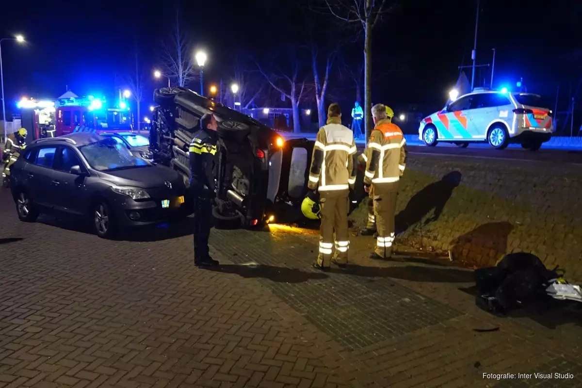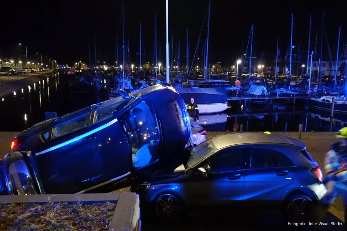 De automobilist reed op de dijk en raakte door nog onbekende oorzaak van de weg. Hij kwam vervolgens zijwaarts op een geparkeerde auto tot stilstand, onderaan de dijk.