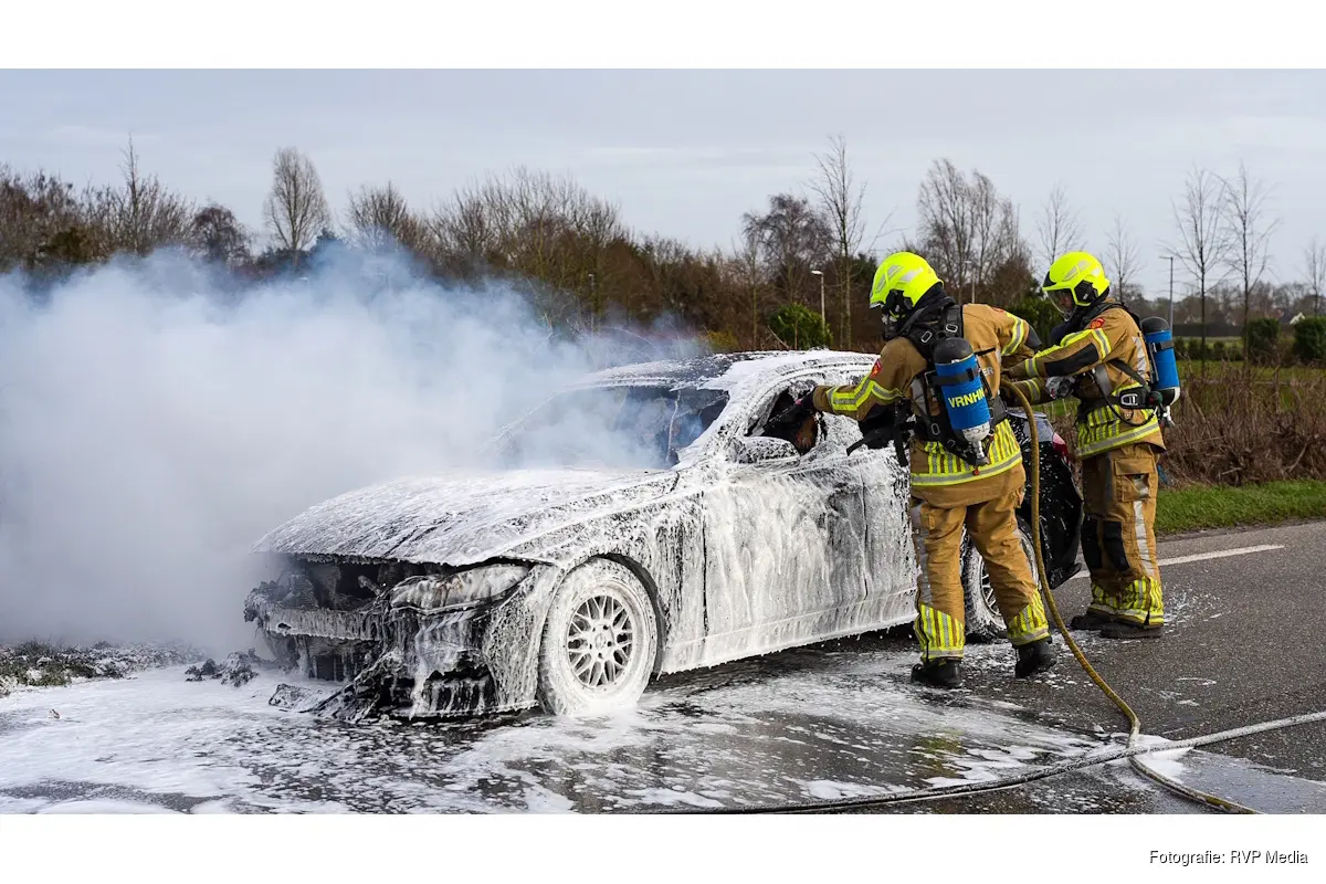 De brandweer heeft het brandende voertuig met schuim geblust. De brand was daarna snel onder controle.