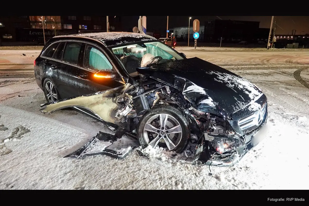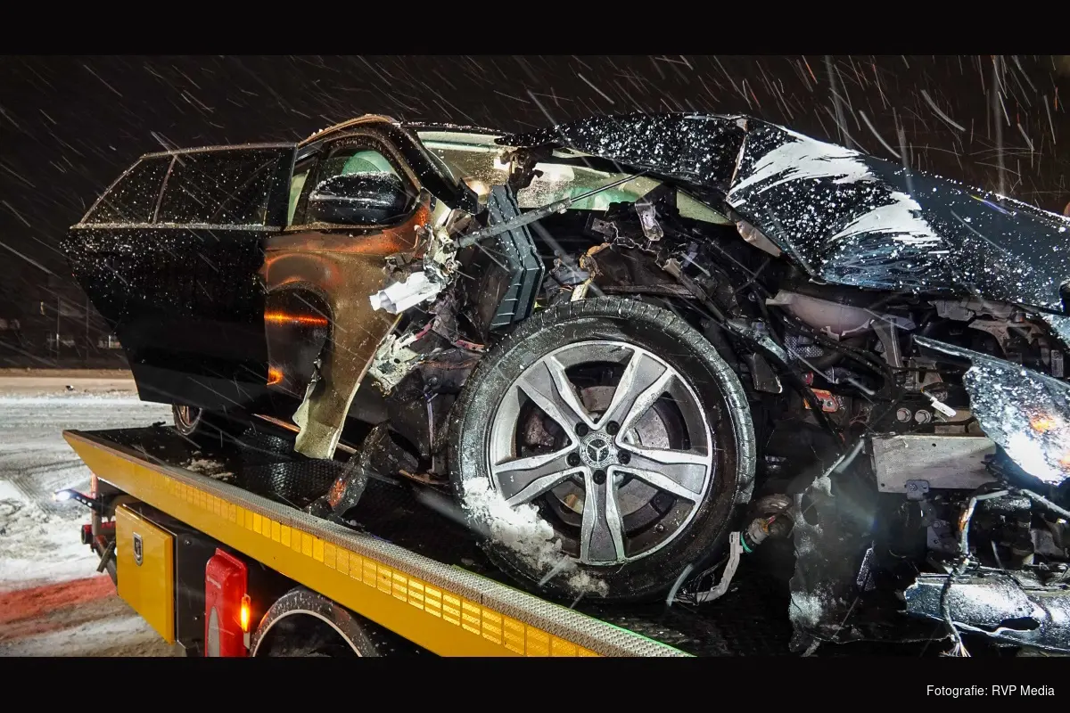 De impact veroorzaakte aanzienlijke schade. Brokstukken lagen verspreid over de weg. De bestuurder liep lichte verwondingen op, maar hoefde na controle door ambulancepersoneel niet naar het ziekenhuis.