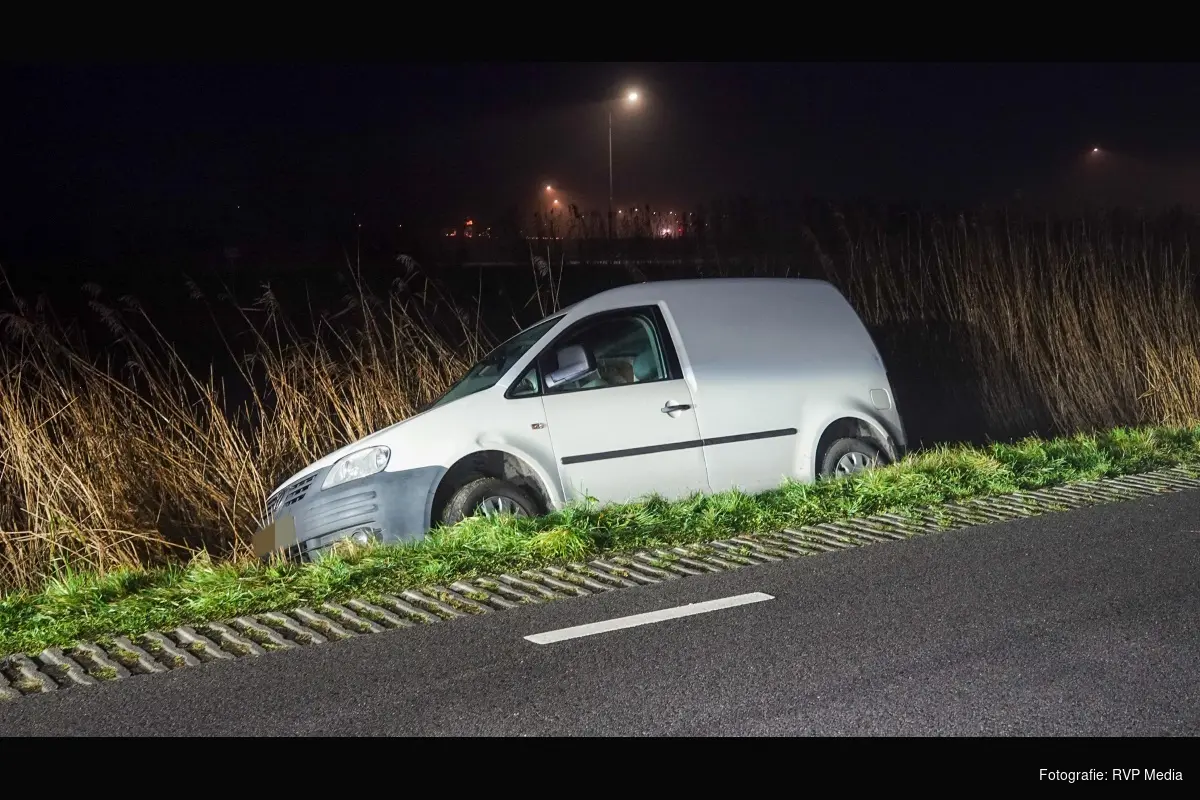 URSEM - De bestuurder van een bestelbus is zaterdag aan het einde van de middag in een benarde situatie terecht gekomen langs de Schermerdijk.
