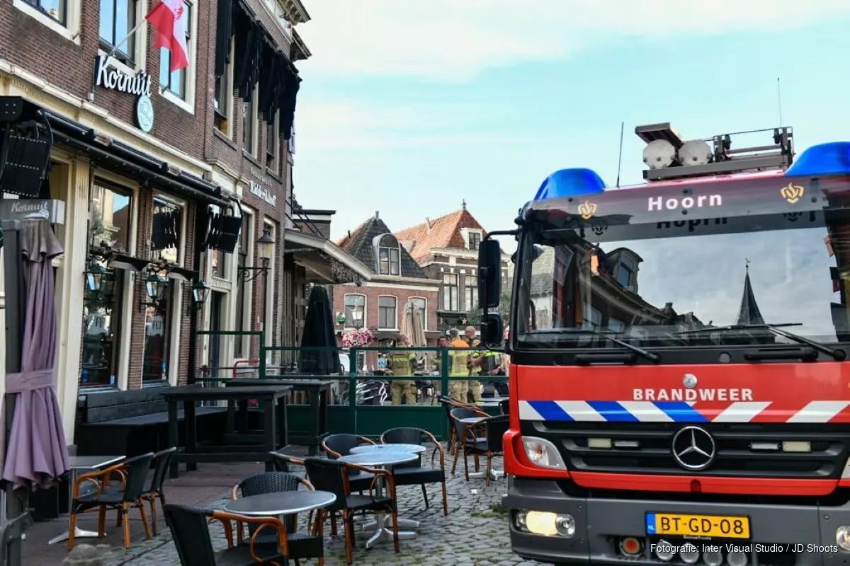 De brand werd als eerste gemeld door een rookmelder, waarna er even later werd opgeschaald in verband met een daadwerkelijke brand in het pand. Hierdoor kwamen extra voertuigen van de brandweer ter plekke, mede ook doordat het oude panden betreft in de binnenstad van Hoorn. Ter plekke bleek dat het pand volledig onder de rook stond, zo meldt de brandweer. Ook bij de buren stond er lichte rook in het pand. Er heeft een brand gewoed in het café, onder andere een gordijn was aan het branden. Wat hiervan de oorzaak is, is niet bekend. De brandweerlieden ventileren het pand en daarna zal er bekeken worden hoe veel schade is er is en of het pand weer in gebruik genomen kan worden. Dat is nu nog niet duidelijk.