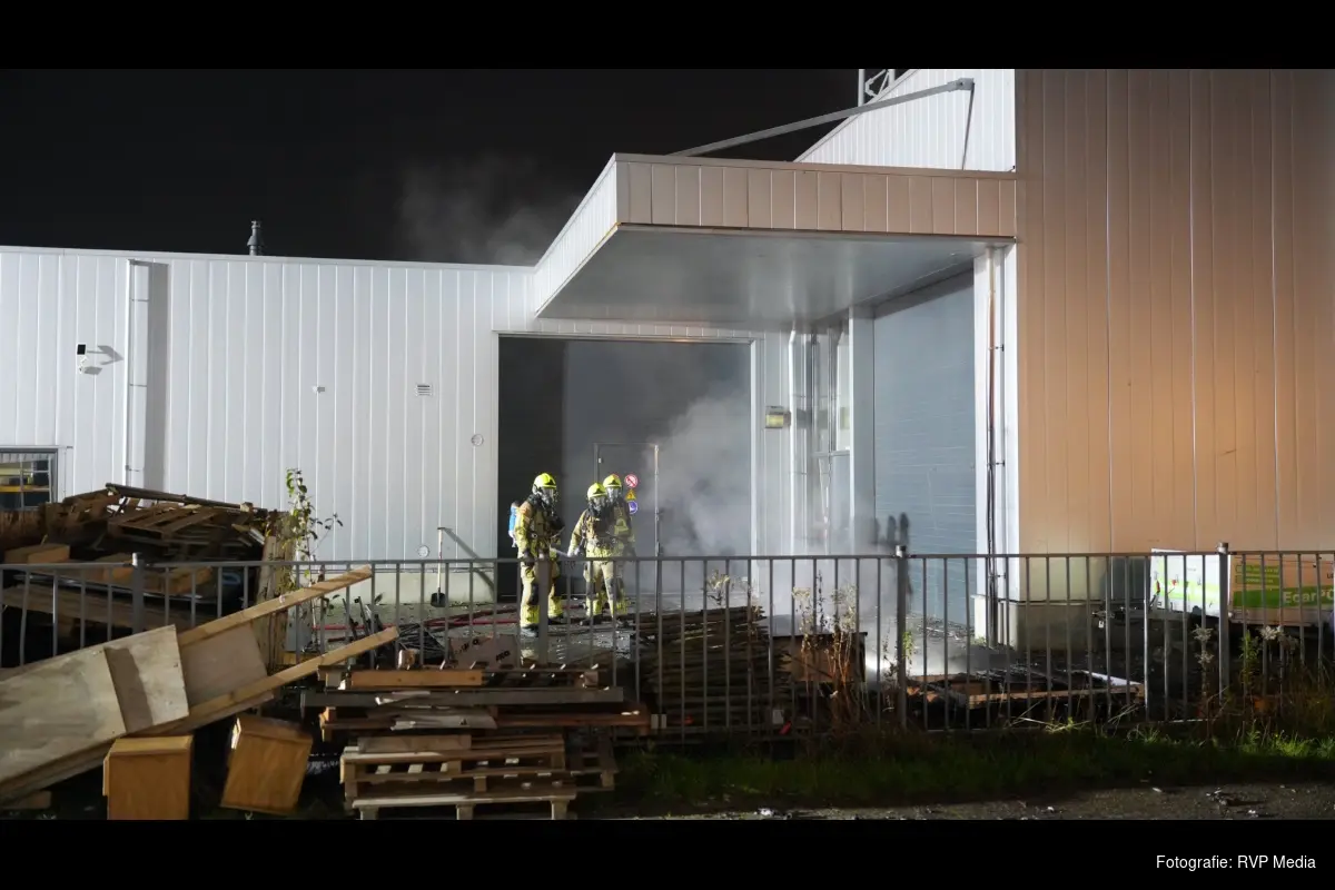 Een hoogwerker van de brandweer kwam ter plaatse en om controle uitvoeren op het dak van het gebouw.