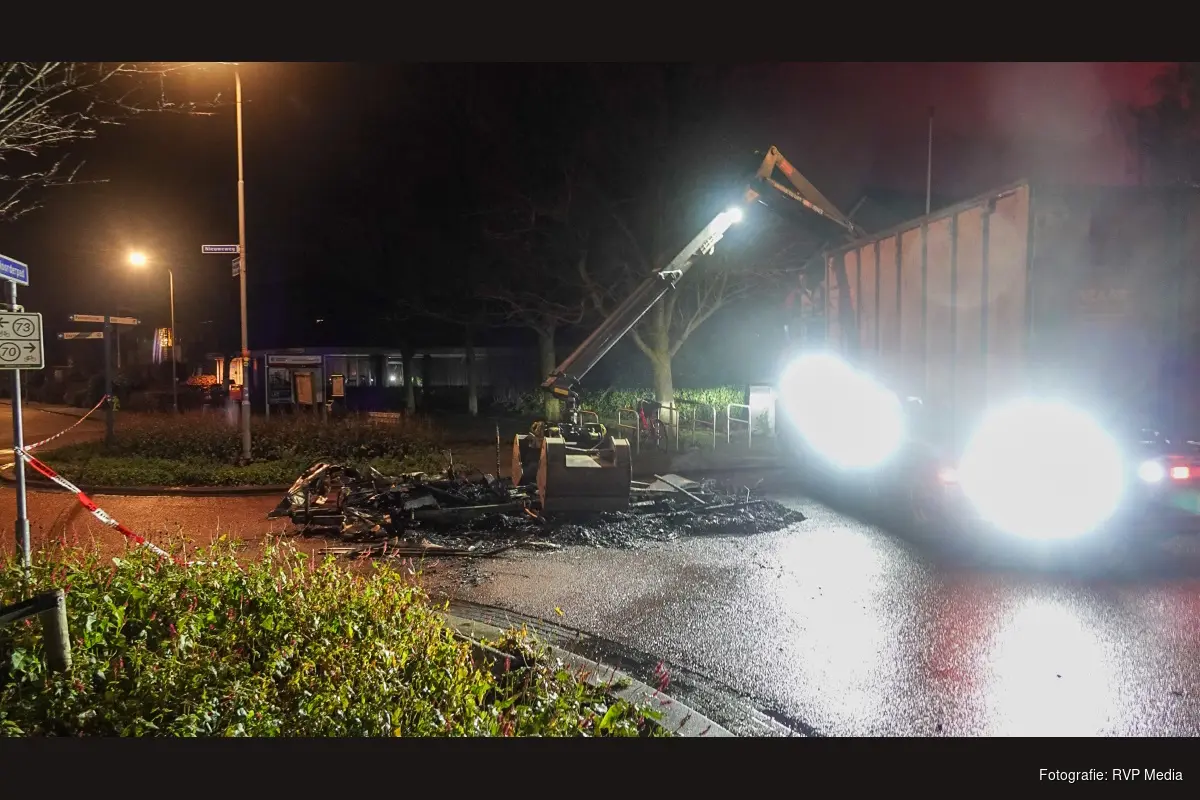 De oorzaak van het vuur is vermoedelijk brandstichting. De gemeente heeft de restanten met een grijper en een container verwijderd.
