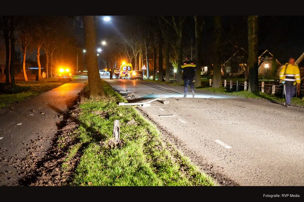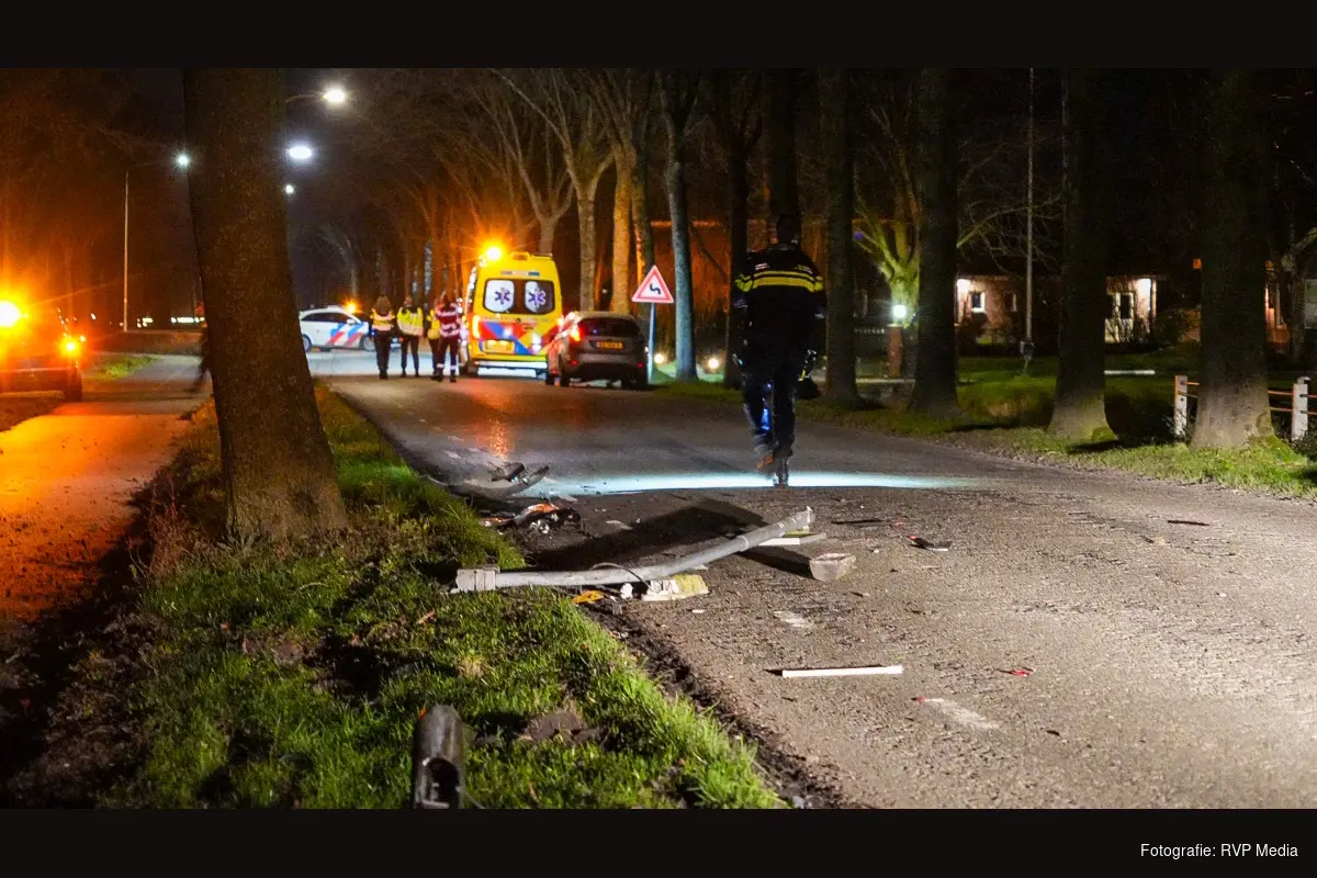 Een automobilist verloor door nog onbekende oorzaak de macht over het stuur en botste vervolgens tegen een lantaarnpaal.