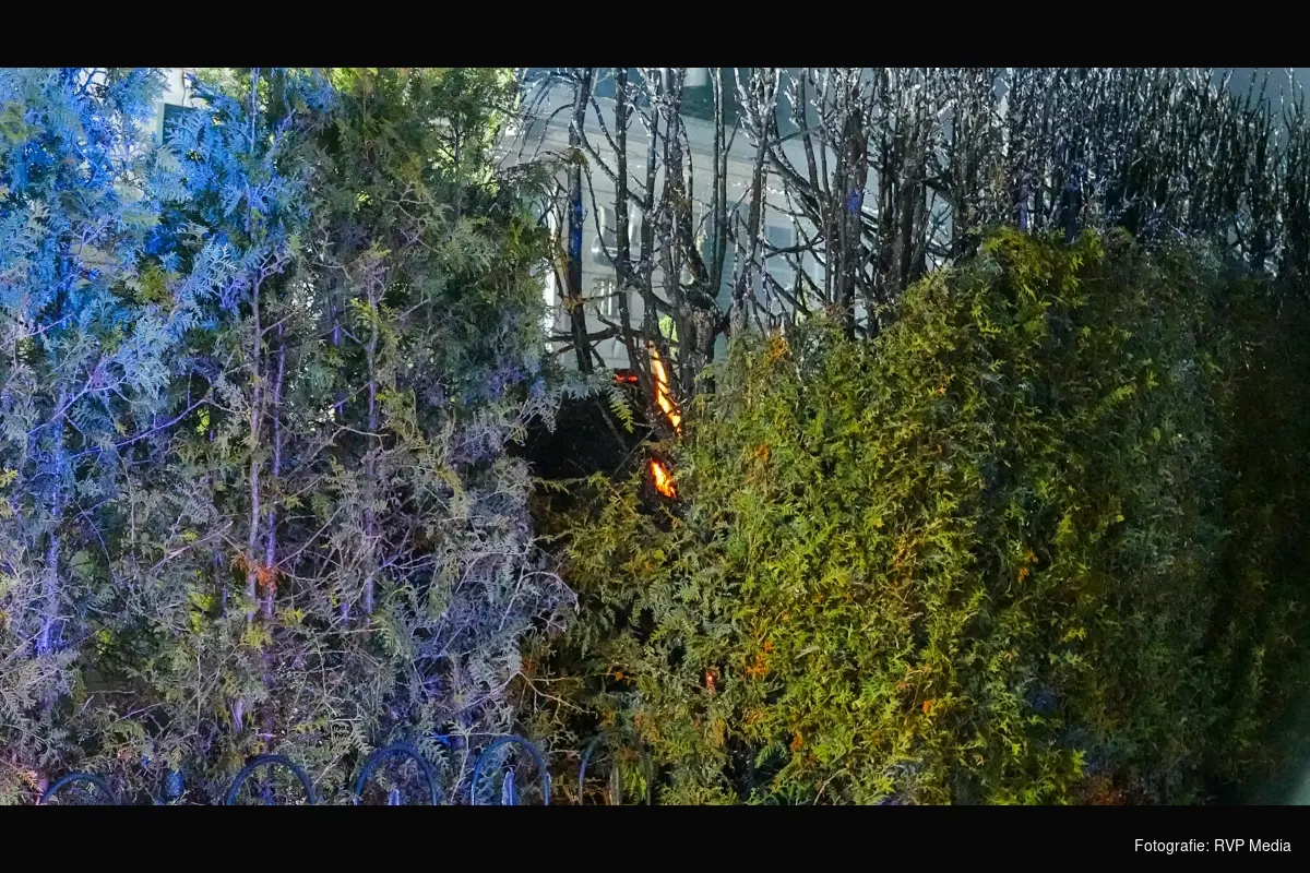 De oorzaak van de brand is vooralsnog onduidelijk. De bovenkant van de heg is van voor tot achter verbrand.