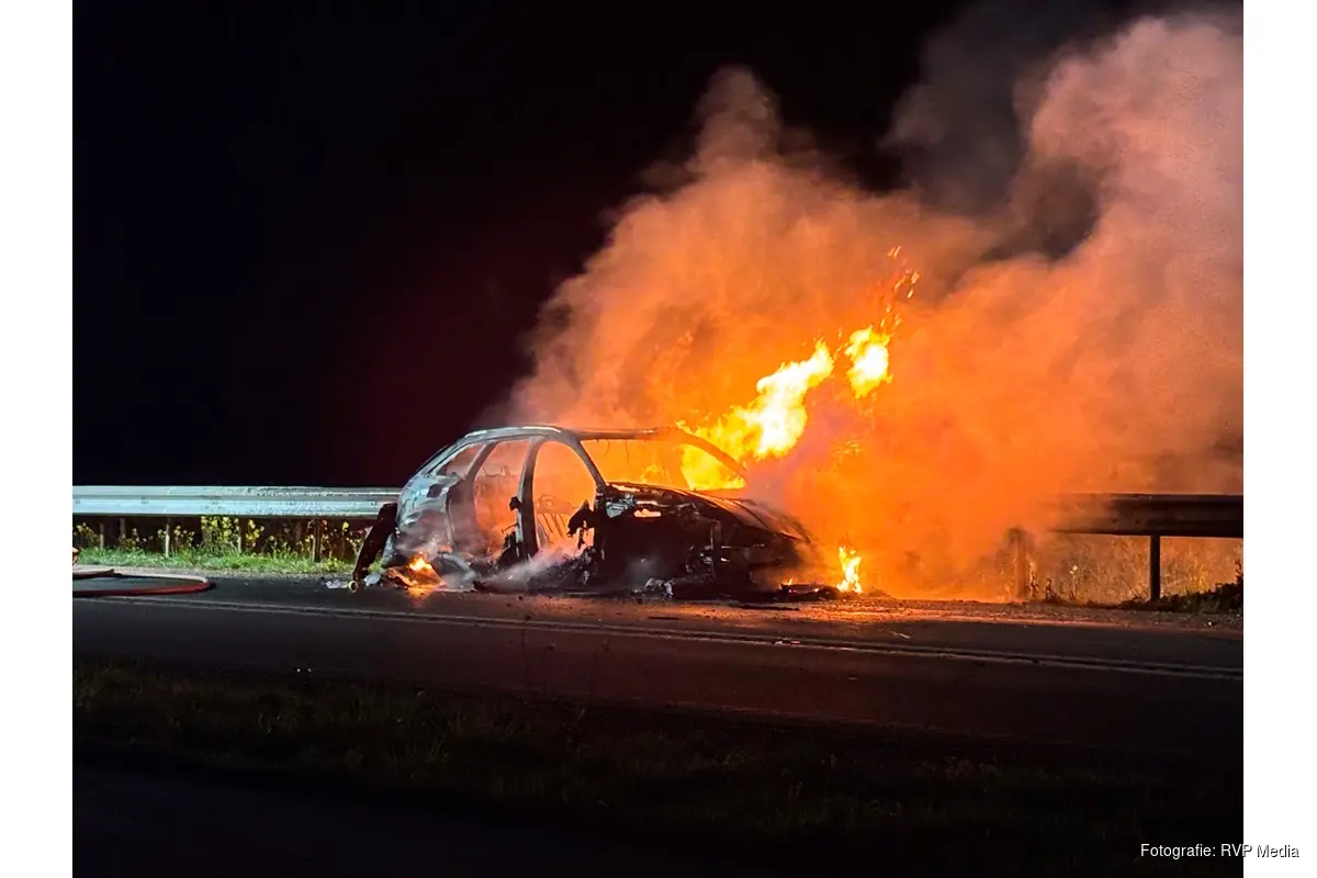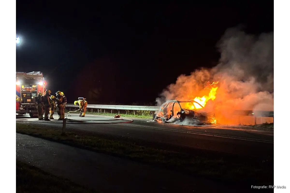 Rond 21.50 uur ging het mis, meerdere auto's en een motorrijder botste. Één auto vloog in brand, deze inzittenden bleven ongedeerd. Zowel de brandweer uit Lelystad als Enkhuizen werden opgeroepen, maar konden niet voorkomen dat het voertuig volledig afbrandde.