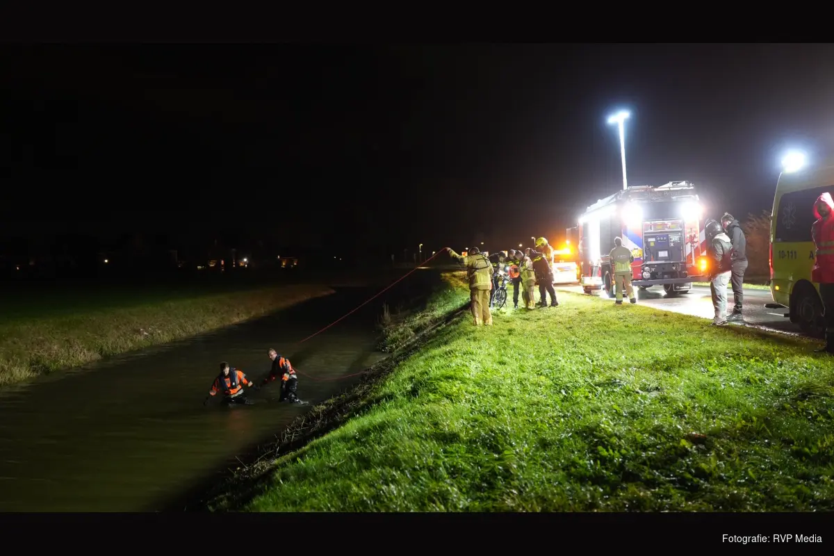 De brandweer heeft doormiddel van duikers en brandweerlieden in waadpakken de sloot doorzocht maar daar niemand aangetroffen. De politie doet onderzoek naar de herkomst van de fiets.