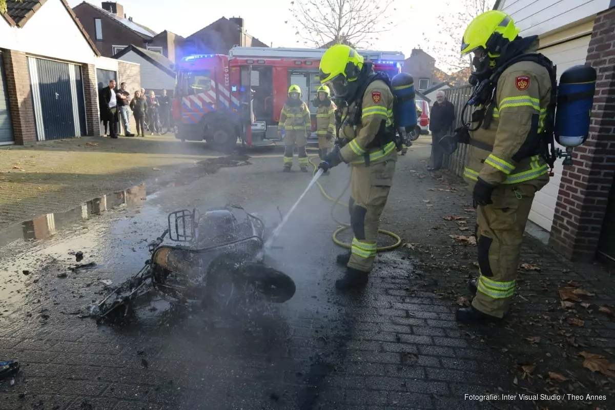 Buurtbewoners hoorden een harde knal, en toen zij gingen kijken troffen ze de scooter aan. De oorzaak van de brand wordt nog onderzocht.