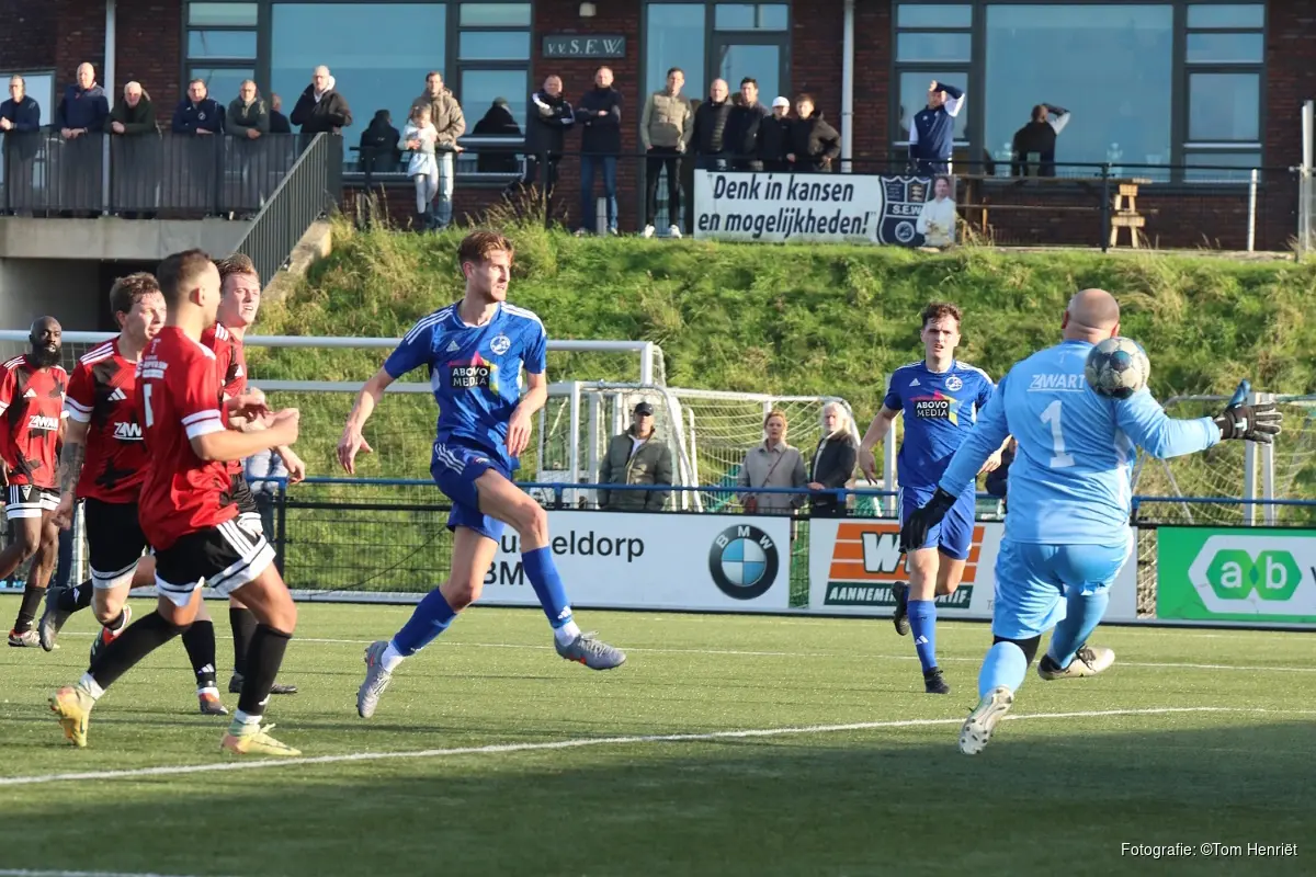 De gasten uit Amsterdam hadden in de eerste zes wedstrijden slechts drie punten behaald en waren duidelijk niet naar Nibbixwoud gekomen om de schoonheidsprijs te verdienen. Toch wist SEW middels treffers van Max Draijer en Glenn Vlaar met 2-0 de rust in te gaan.