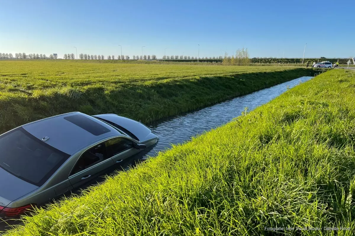 VENHUIZEN - Een bestuurder van een taxi is zaterdagavond rond 19.00 uur het water ingereden langs de N506 in Venhuizen.