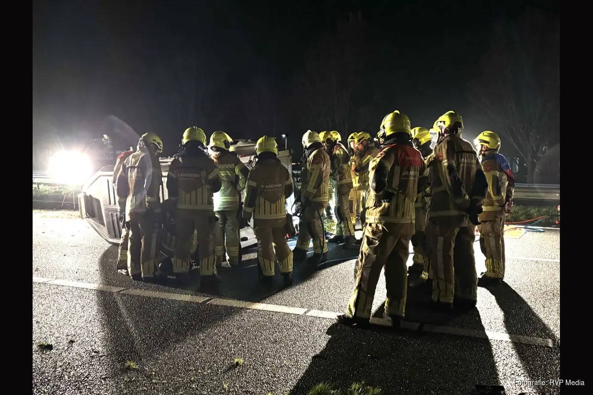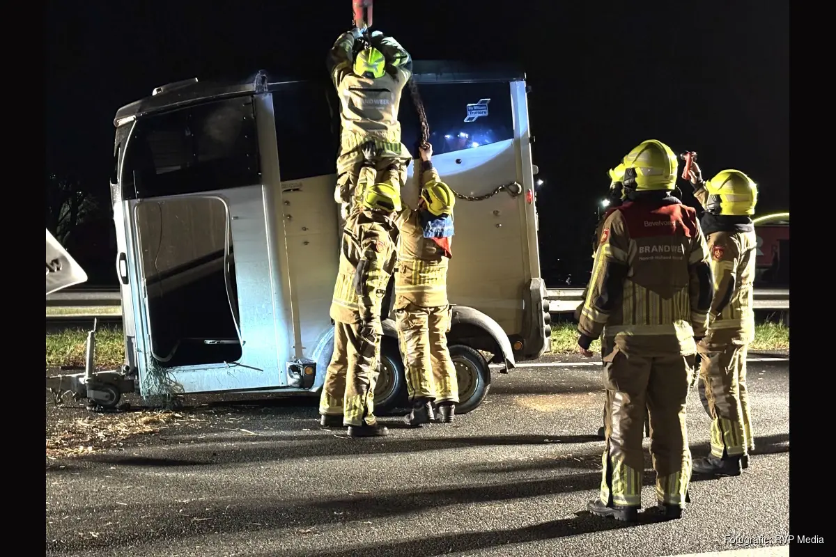 Een auto was achterop een aanhanger met daarin een pony gereden. De aanhanger werd getrokken door een auto die in de vangrail terecht kwam. De aanhanger kantelde met daarin de pony. Het dier is door de brandweer bevrijd en met spoed naar een dierenkliniek gebracht.