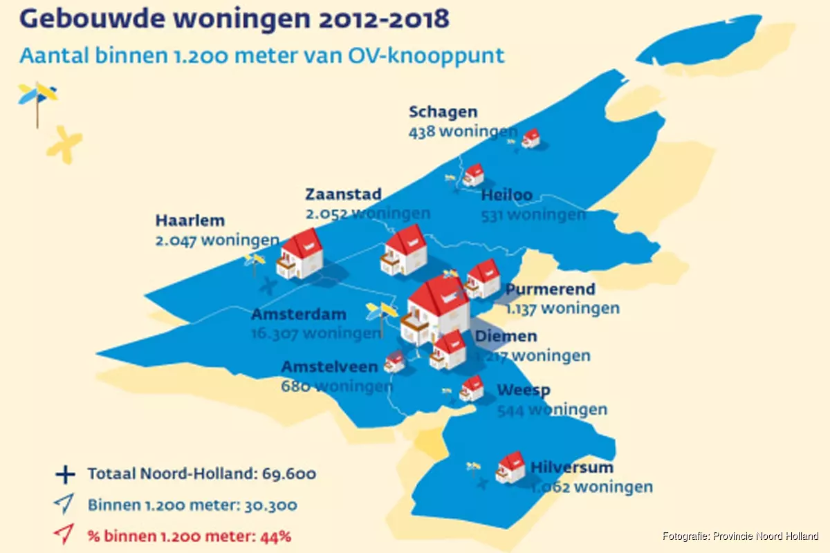 Het aantal woningen dat wordt gebouwd rondom OV-knooppunten ligt vanaf 2015 hoger dan voorgaande jaren. Uit cijfers die gemeenten aanleverden, blijkt ook dat maar liefst 80% van de woningbouwopgave van 202.000 woningen voor de jaren 2019-2040 binnen 1200 meter van een OV-knooppunt gebouwd kan worden.