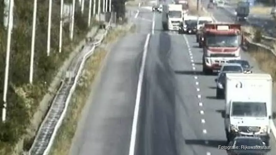 Het opruimen van het oliespoor zal volgens Rijkswaterstaat nog wel even gaan duren. Hoe lang precies, is niet duidelijk. Tussen Wognum en afrit Hoorn-Noord is de rechterrijstrook afgesloten.
