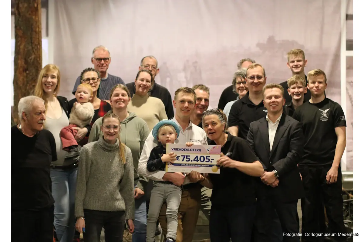 MEDEMBLIK - Oorlogsmuseum Medemblik heeft voor het eerst een cheque mogen ontvangen dankzij deelname aan de VriendenLoterij. Gisteren werd een prachtig bedrag van maar liefst € 75.405 overhandigd.