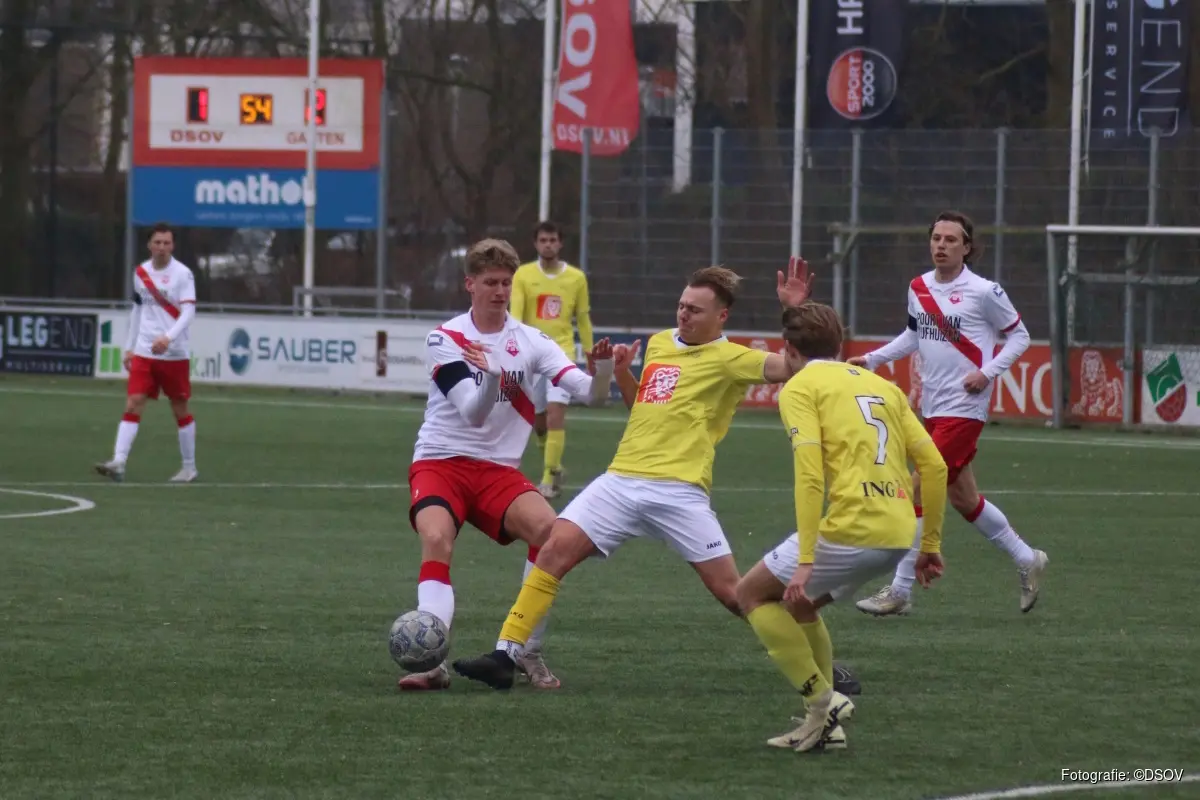 Invaller Remco Swerissen stond koud in het veld toen hij de 2-3 liet aantekenen en dat was teveel voor DSOV dat ook nog moest toezien hoe Pieter Koopman met een daverende afstandsknal het duel in het slot gooide.