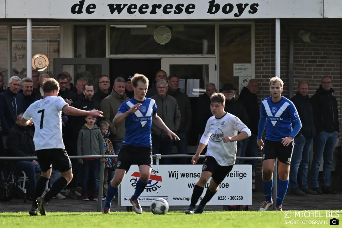 Door de straffe wind in De Weere leek goed voetbal nauwelijks mogelijk, doch door het scoreverloop werd het voor de toeschouwers toch een boeiend duel. De gasten uit Middenmeer namen in de eerste helft een voorsprong door treffers van Levi Mupiri en Kelvin Zomerdijk, maar op slag van rust deed Dylan op 't Veld iets terug voor de thuisploeg van trainer Bas Ruiter.