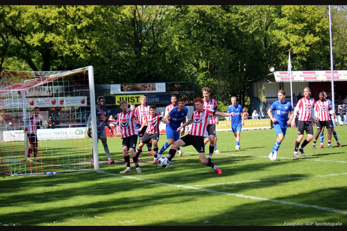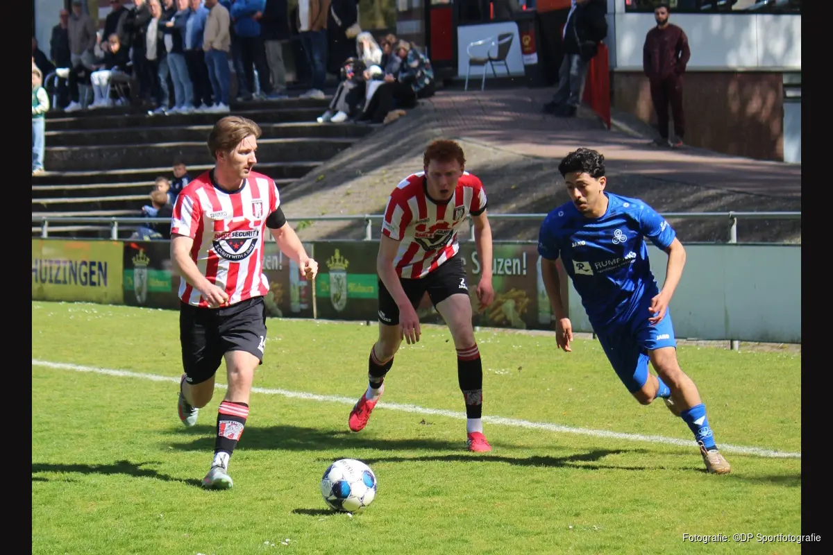 Hollandia probeerde daarna wel meer druk te zetten. Freek Vrenegoor waagde een poging en ook Jim Broers was met een kopbal dicht bij een treffer, maar echt gevaarlijk werd de thuisploeg niet. DEM bleef daarentegen gevaarlijk in de omschakeling en besliste het duel definitief met de 0-3 van Quin van der Mark.