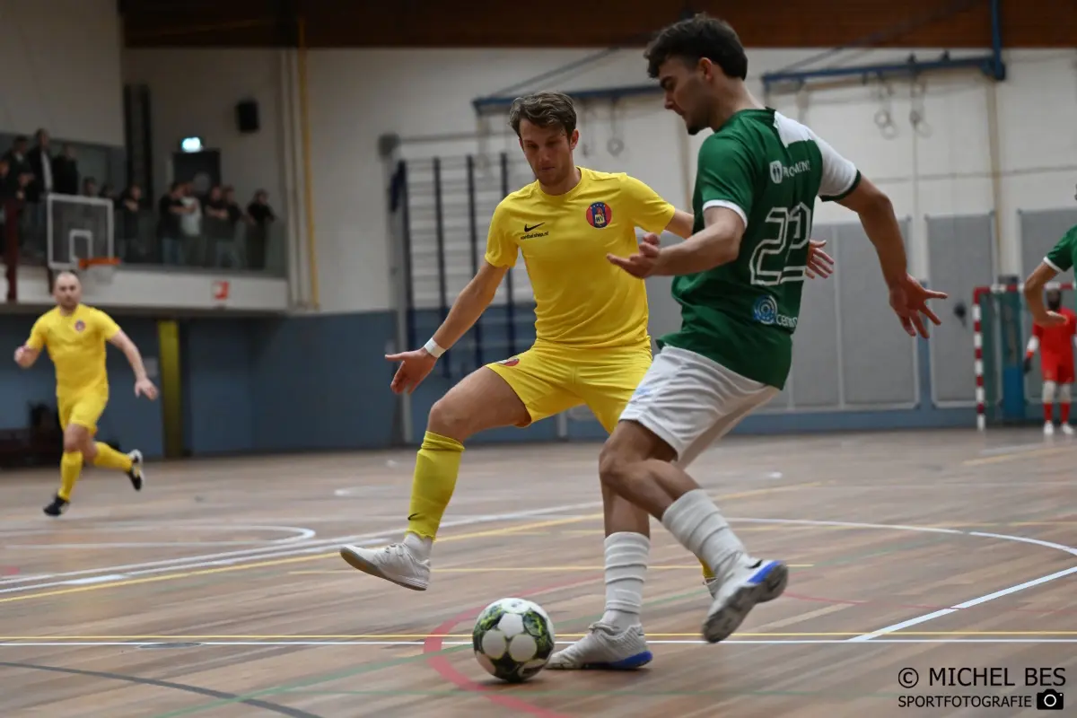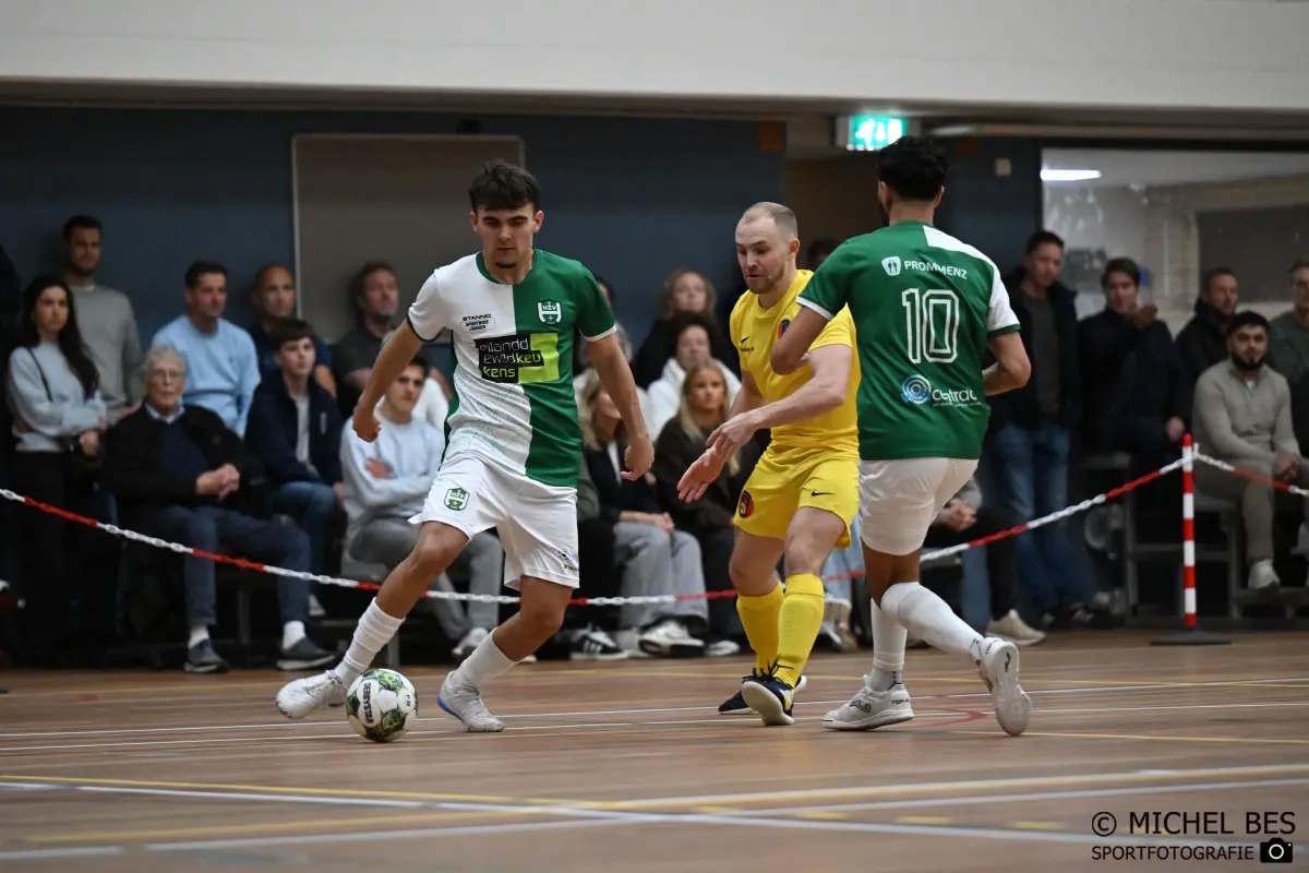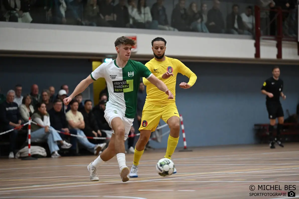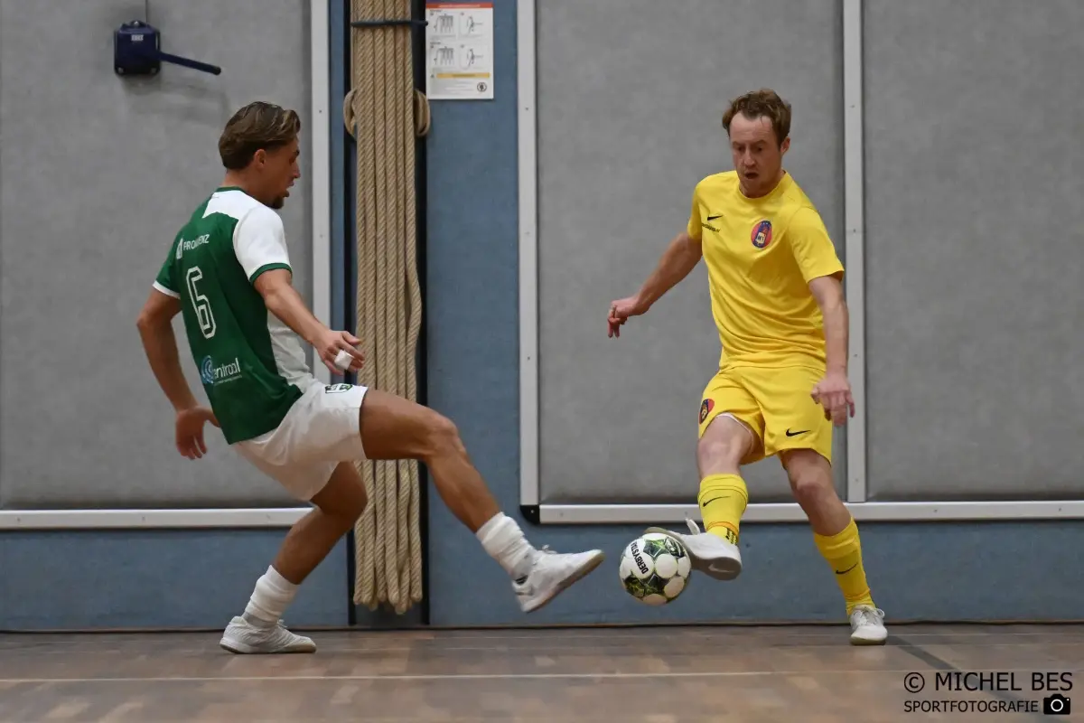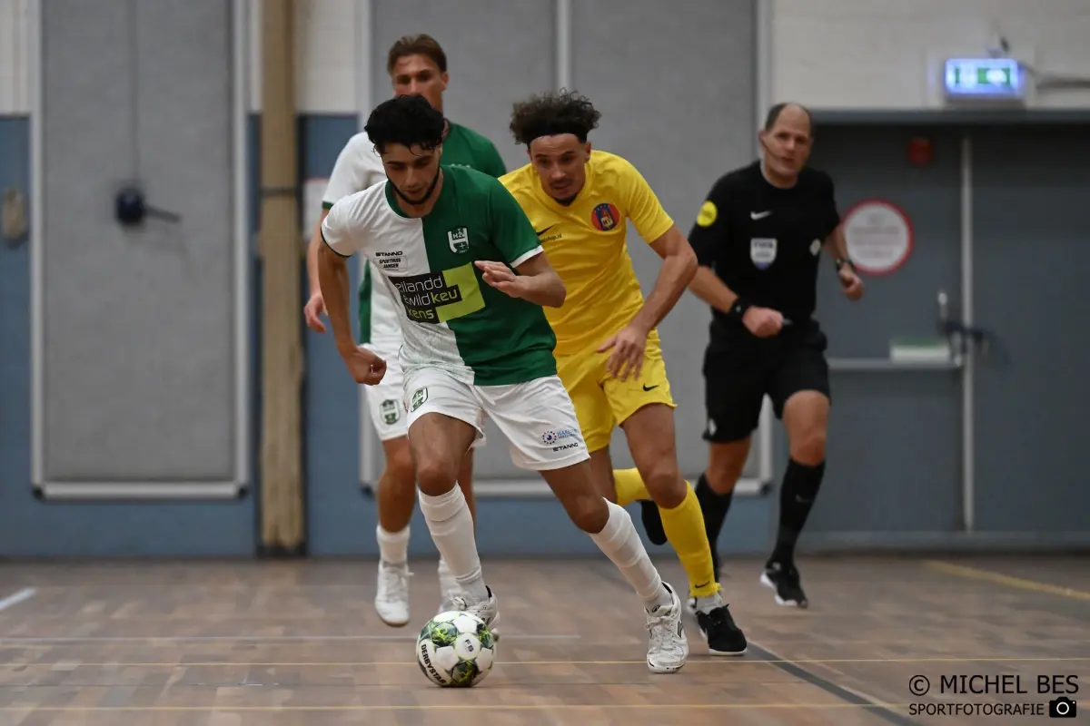 De gasten uit Hoorn deden snel zaken in Sporthal 't Vennewater waar Mo Darri al vlot de score opende en die werd vlot daarna verdubbeld door Floris Kemps, waarbij keeper Ko de Vries niet vrijuit ging. HZV deelde wel een paar speldenprikjes uit, maar doelman Marcel Ons hoefde nauwelijks in actie te komen. Door twee doelpunten van David Albert was het duel feitelijk bij rust al beslist.