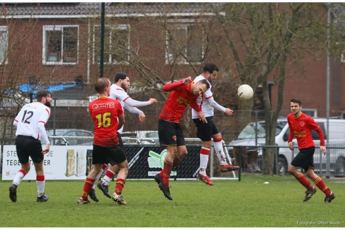 Onder pittige omstandigheden, wind, regen en en zwaar bespeelbaar veld, opende Daan Dijkman halverwege de eerste helft de score.