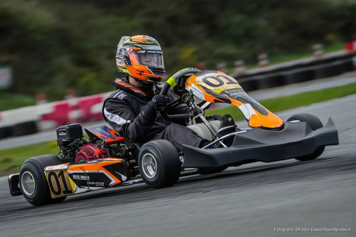 BERGHEM - Reno Rolink is zondag in Berghem Nederlands kampioen in de Super Rocky Junior Parolin-klasse geworden, en dat was zeker geen verrassing. De twaalfjarige karter uit Obdam won tijdens de zesde ronde van het Nederlands kampioenschap viertakt de kwalificatie én de eerste twee races met overweldigend machtsvertoon. Met maar liefst vijf zeges in zes wedstrijden dit seizoen was de titel al na de eerste race van zondag binnen.