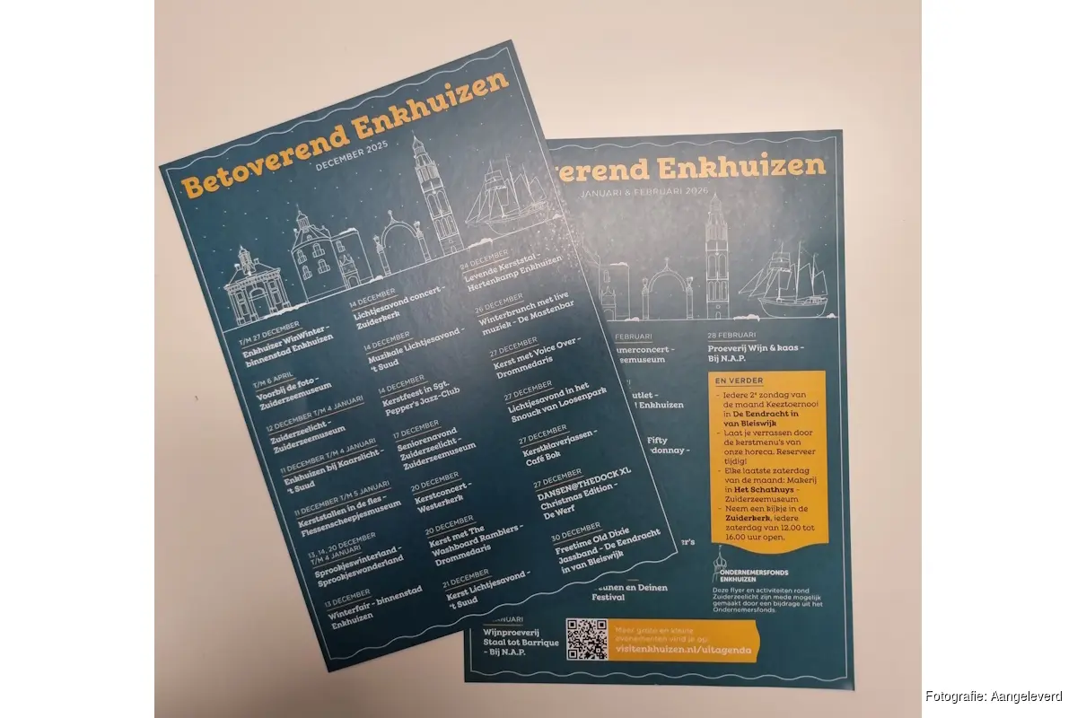 Winkeliers, horeca en cultuur zorgen samen met Sprookjeswonderland en de musea voor een winter vol magie en gezelligheid. Onder de noemer Betoverend Enkhuizen heeft Stichting Marketing Enkhuizen alle leuke, swingende en sfeervolle evenementen verzameld en op VisitEnkhuizen.nl gezet. Een gevarieerde selectie heeft een plekje gekregen op de flyer Betoverend Enkhuizen die inmiddels op diverse locaties in de stad verkrijgbaar is. Annemieke Hageman (Stichting Marketing Enkhuizen): “Van Dansen@The Dock XL Christmas Edition tot een levende kerststal en van jazzconcert tot wijnproeverijen; er is voor iedereen wat leuks te doen!”